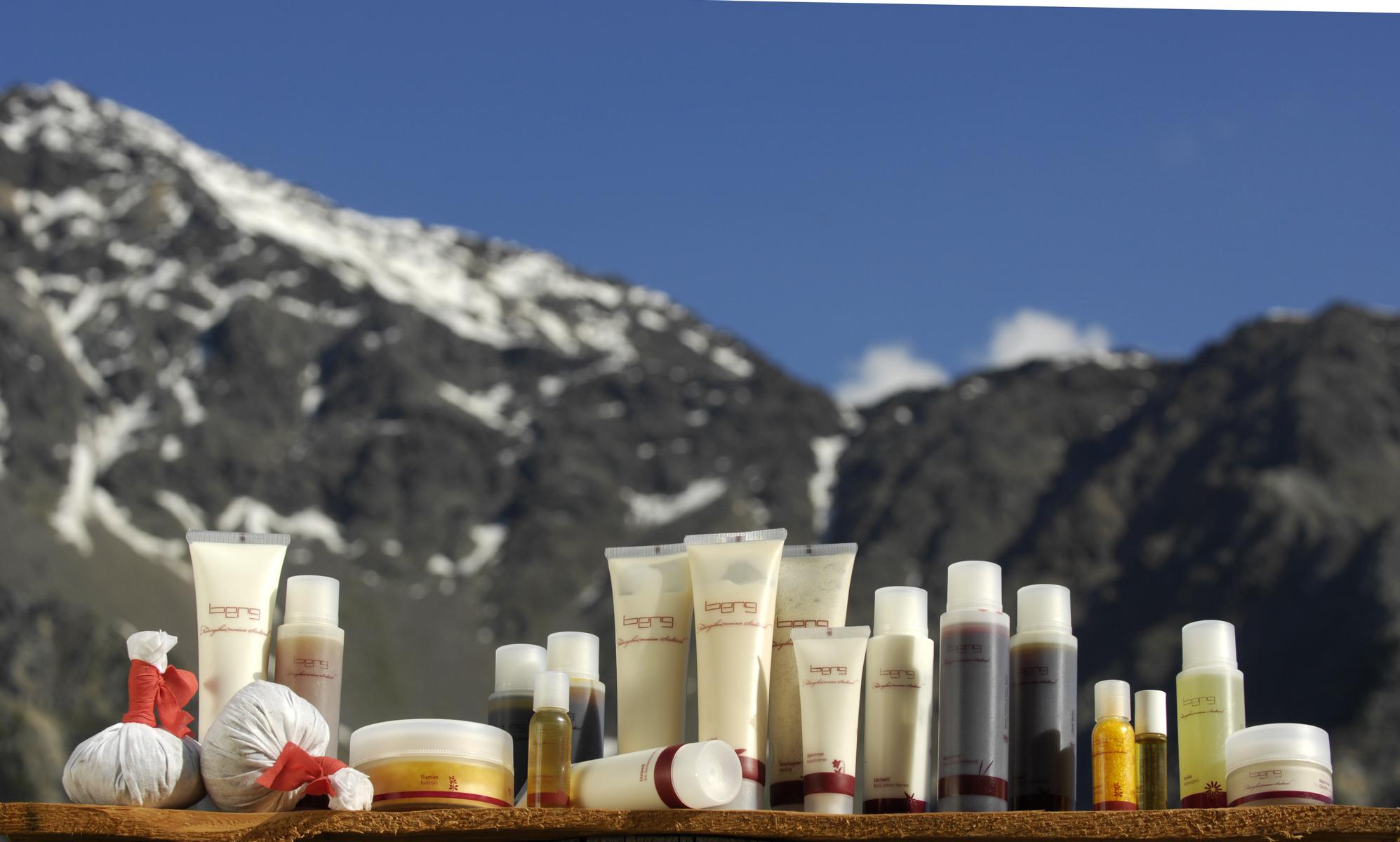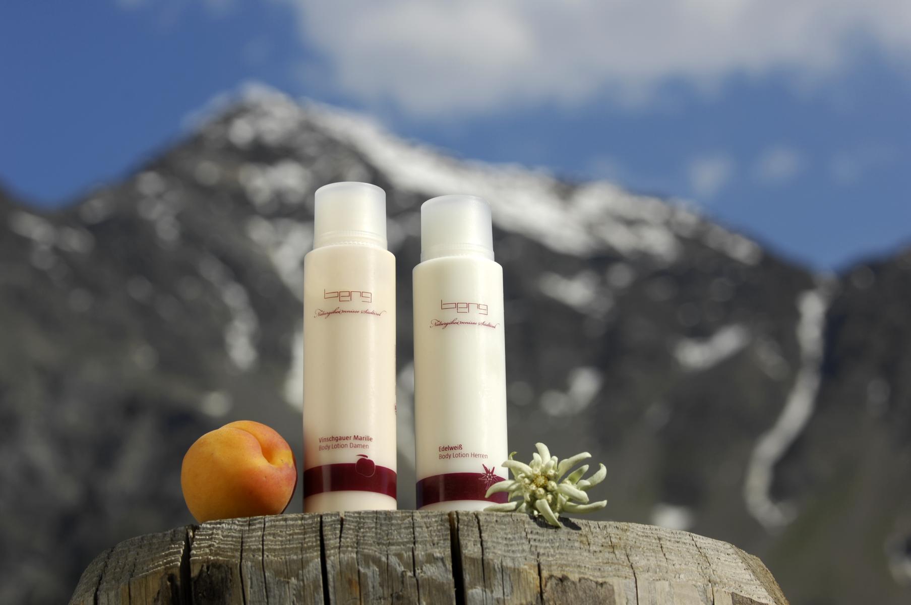 Sämtliche Kräuter und Substanzen, welche für die Herstellung der BERG-Kosmetiklinie verwendet werden, stammen vom Unternehmen Südtiroler Kräutergold/Kräuterschlössl, welche auf jeglichen Einsatz von chemischen Pflanzenschutzmitteln, Kupfer, Schwefel und Kunstdünger verzichten.