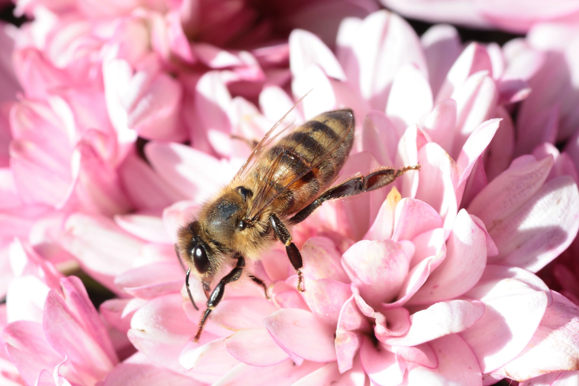 Die Bienen sind sehr fleißig. Was eine Biene alles in ihrem kurzen Leben erledigt, ist wirklich erstaunlich und wird auch noch genau studiert! Da werden die Zellen geputzt, der Nachwuchs gewärmt und gefüttert, die Waben gebaut, das Flugloch bewacht, der Bienenstock gekühlt und und und. Außer den Arbeiten im Bienenstock gibt es für die Biene auch eine Menge im Freien zu erledigen. Sie sammelt Wasser, Kittharz, Nektar und Honigtau. Wussten Sie, dass die Biene zur Bestäubung unserer Nutzpflanzen, wie zum Beispiel dem Apfelbaum, beiträgt?
