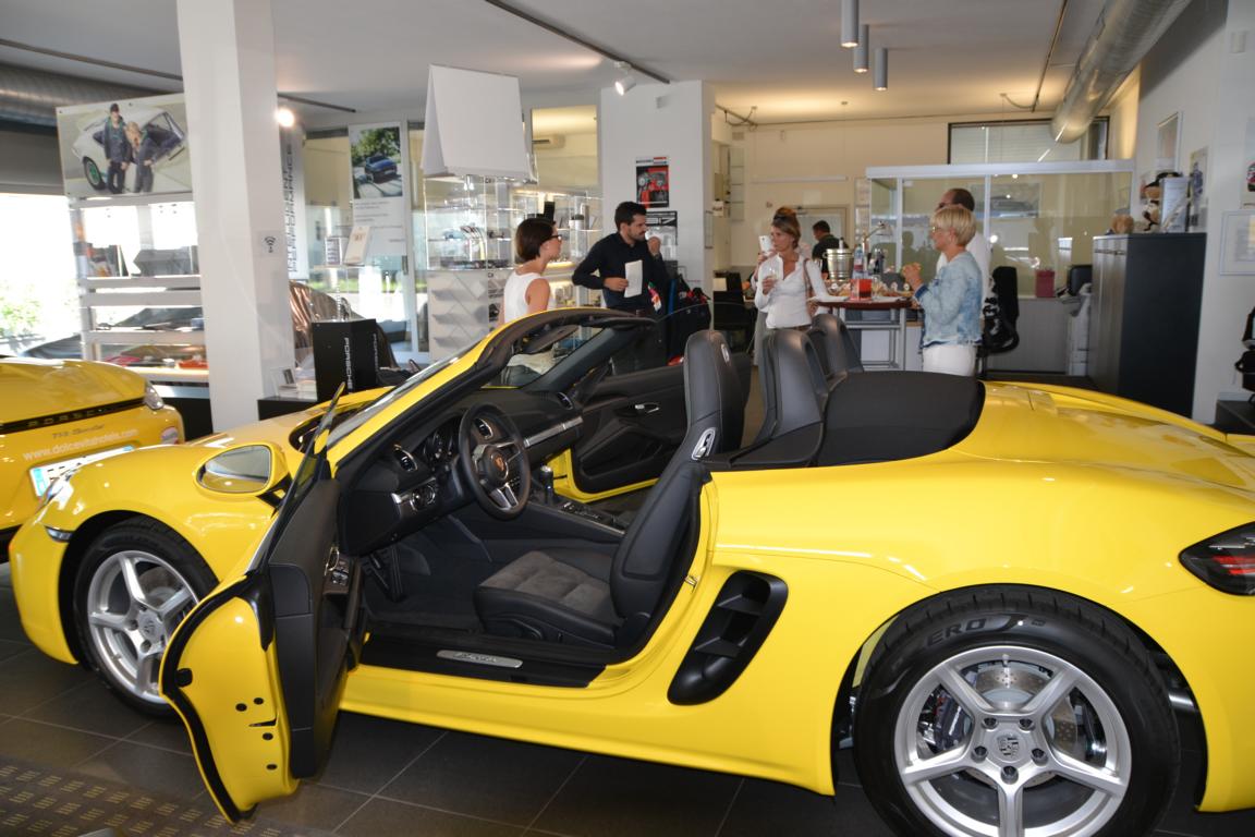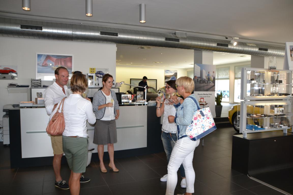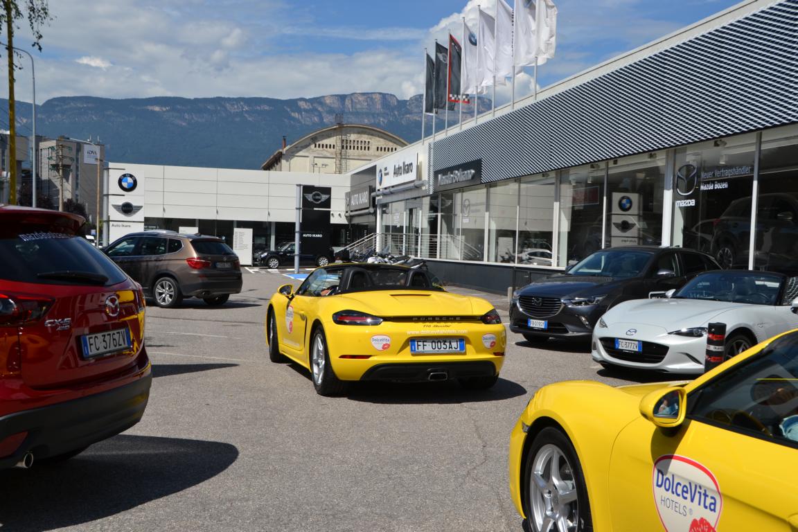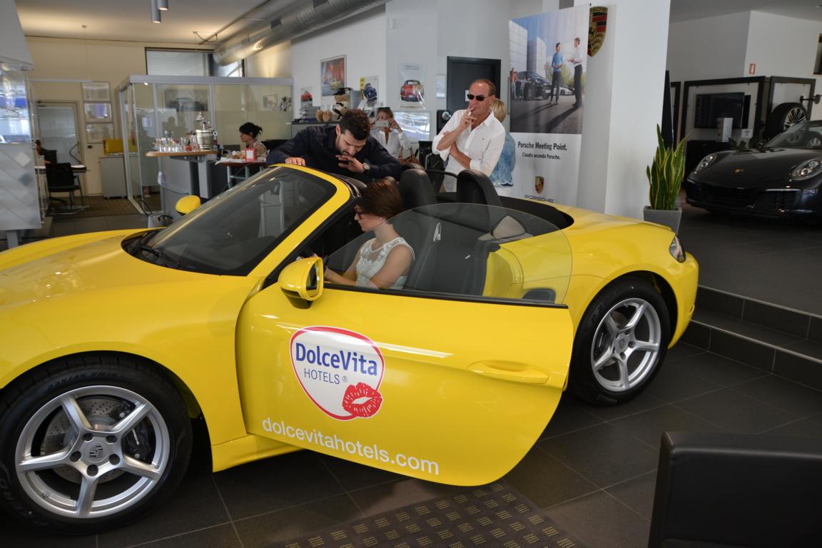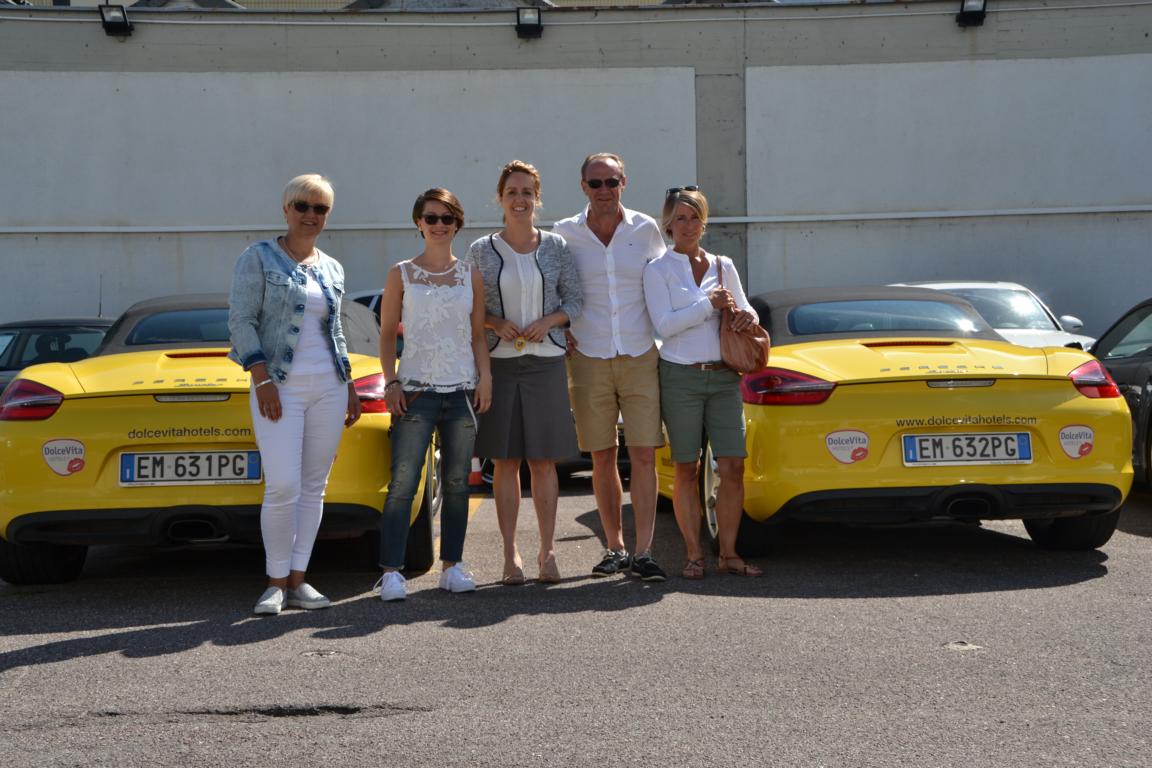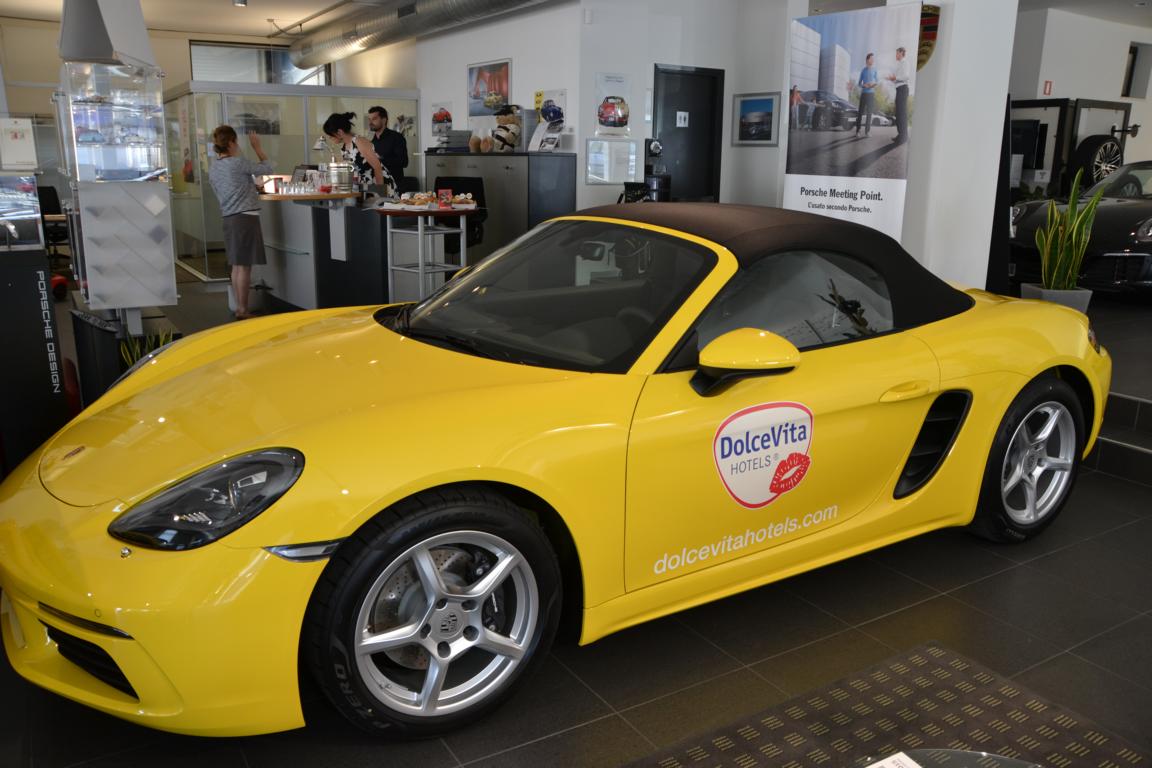 Mit bei der Abholung waren vier eingefleischte Porsche Fahrer und Dolce Vita Gäste welche per Zufall ausgesucht worden. Sie durften sozusagen die Porsche einweihen und die „Jungfernfahrt“ ab dem Porsche Centrum in Bozen machen. Zuerst mussten die „alten“ Porsche aber nach Bozen gefahren werden. Mit einem Fotograf im Gepäck ging die Fahrt zeitig in der Früh los und die Gäste genossen noch einmal den Eindruck der alten Modelle. In Bozen angekommen erwartete sie bereits der Chefverkaufer, Michael Renzler mit einem kleinen Umtrunk. Mit einem Glas Sekt und freudiger Erwartung wurde gemeinsam direkt neben dem neuen Porsche angestoßen.