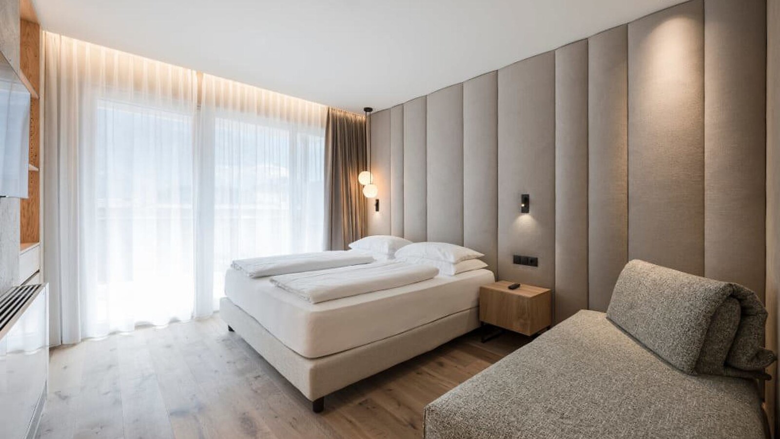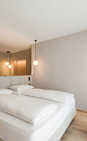 Wir haben Dolce Vita und das federleichte Lebensgefühl Südtirols eingefangen und in einer ganz besonderen Suite hochleben lassen. Unsere Dolce Vita Suite begeistert mit exklusiv ausgestattetem Wohnraum mit großer Kuschelecke, Holzboden, Naturholzmöbeln, großem, separatem Kinderzimmer mit einem Doppelbett und einem hochwertigem Couchbett für eine zusätzliche Person, modernem Badezimmer mit großer Walk-In-Dusche, Doppelwaschbecken, separatem WC, Minibar, Safe, 2 Flatscreen TV, Telefon, kostenlosem WLAN, großem Südbalkon mit Daybed, Garagenplatz und Klimaanlage.