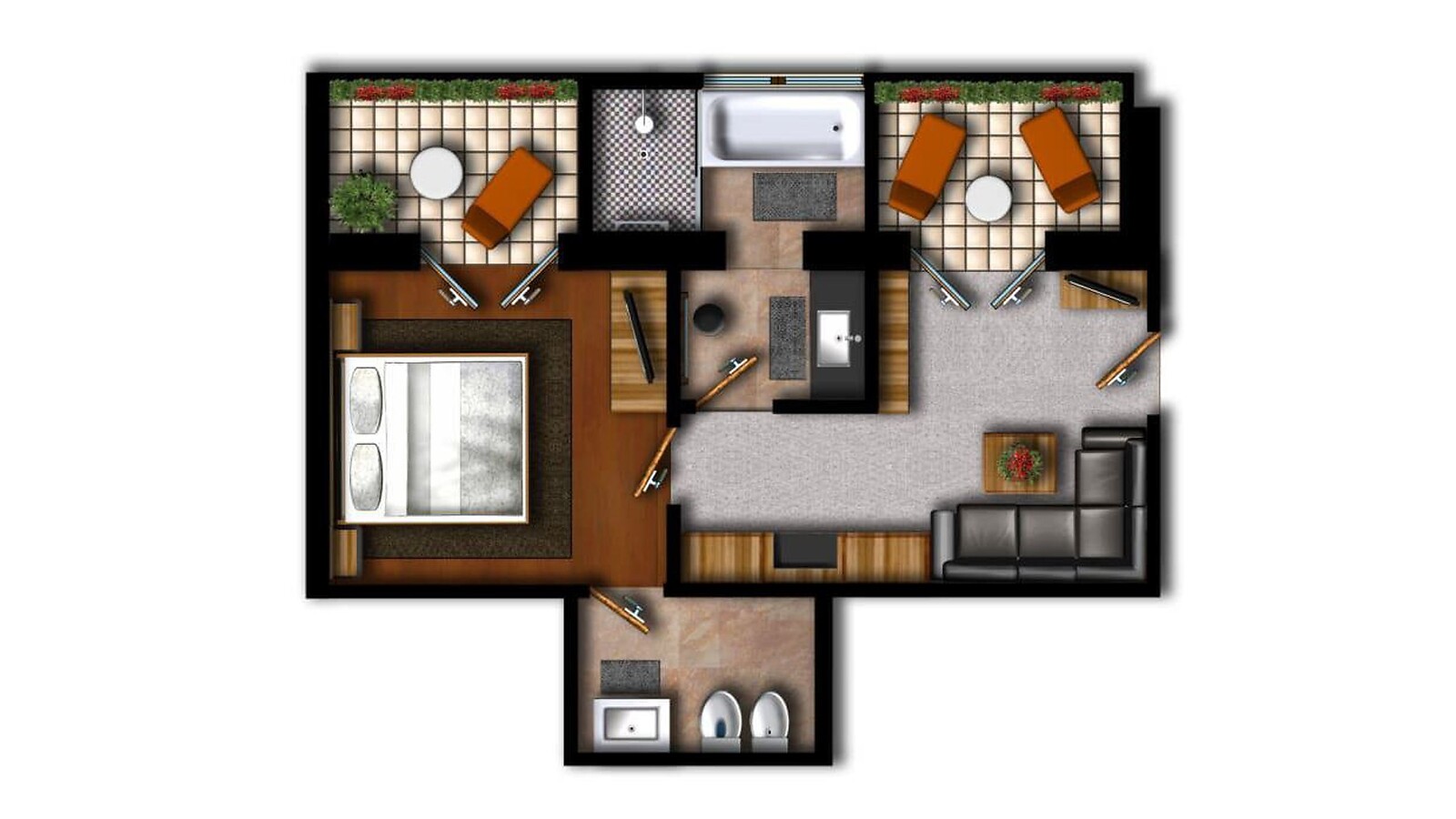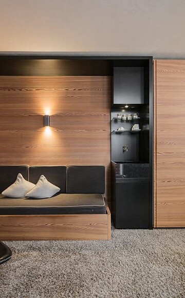 ca. 44 m² inkl. 8 m² Balkon für 2 - 3 Personen, kuscheliges, modernes Zimmer, Wohn- und Schlafraum abgetrennt, Sofa, Holzboden im Schlafzimmer, Kuschelteppich im Wohnraum, 2 kleine Balkone mit Sicht in das Meraner Land, Bad mit Badewanne, Dusche, Bidet, separates WC, Flat-TV, gratis W-Lan, Minibar, Safe, Garage - keine Haustiere erlaubt