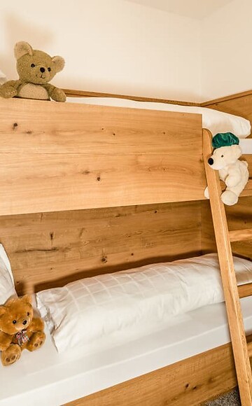 Ein Klassiker für junge Familien, aber nicht nur! Gemütlicher Wohn- und Schlafbereich und eine abgetrennte Schlafkoje mit Stockbett, ideal für Kinder bis 12 Jahre. Helle Naturtöne und eine Kombination aus modern und rustikal. Poolblick.