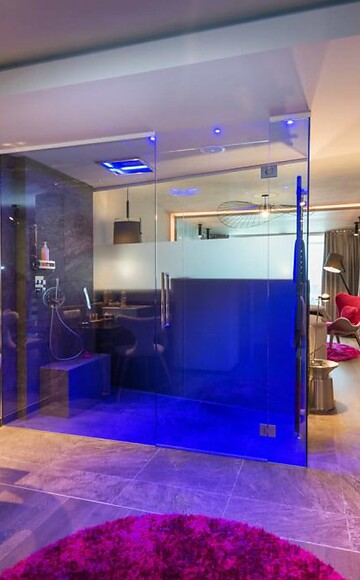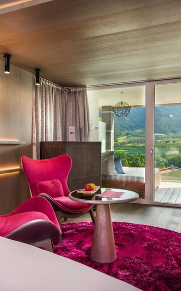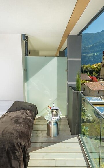 56m² inklusive 12m² Outdoor Living Room (Loggia), Luxus-Boxspringbett mit Sleep-Fit-Health-System 210 cm lang, Komfort-Profi-Schranksystem, 2 Relax-Design-Chairs, Dolby-Surround-TV mit Bluetooth, Koffer-Designbar mit Wein-, Nespresso- & Teedesk, Design-Badezimmer mit Erlebnisdusche für 2, Lady-Beauty-Desk, getrennter Waschtisch für Sie & Ihn, WC und Bidet getrennt, Outdoor Living Room (Loggia im Freien) mit Day Bed (zum Übernachten im Freien), bequeme Sitzmöbel, Duftkräuter, Wärmestrahler und Laterne, keine Tiere. In der DolceVita Lodge. Hightlight: Übernachten im Daybed in der Loggia.