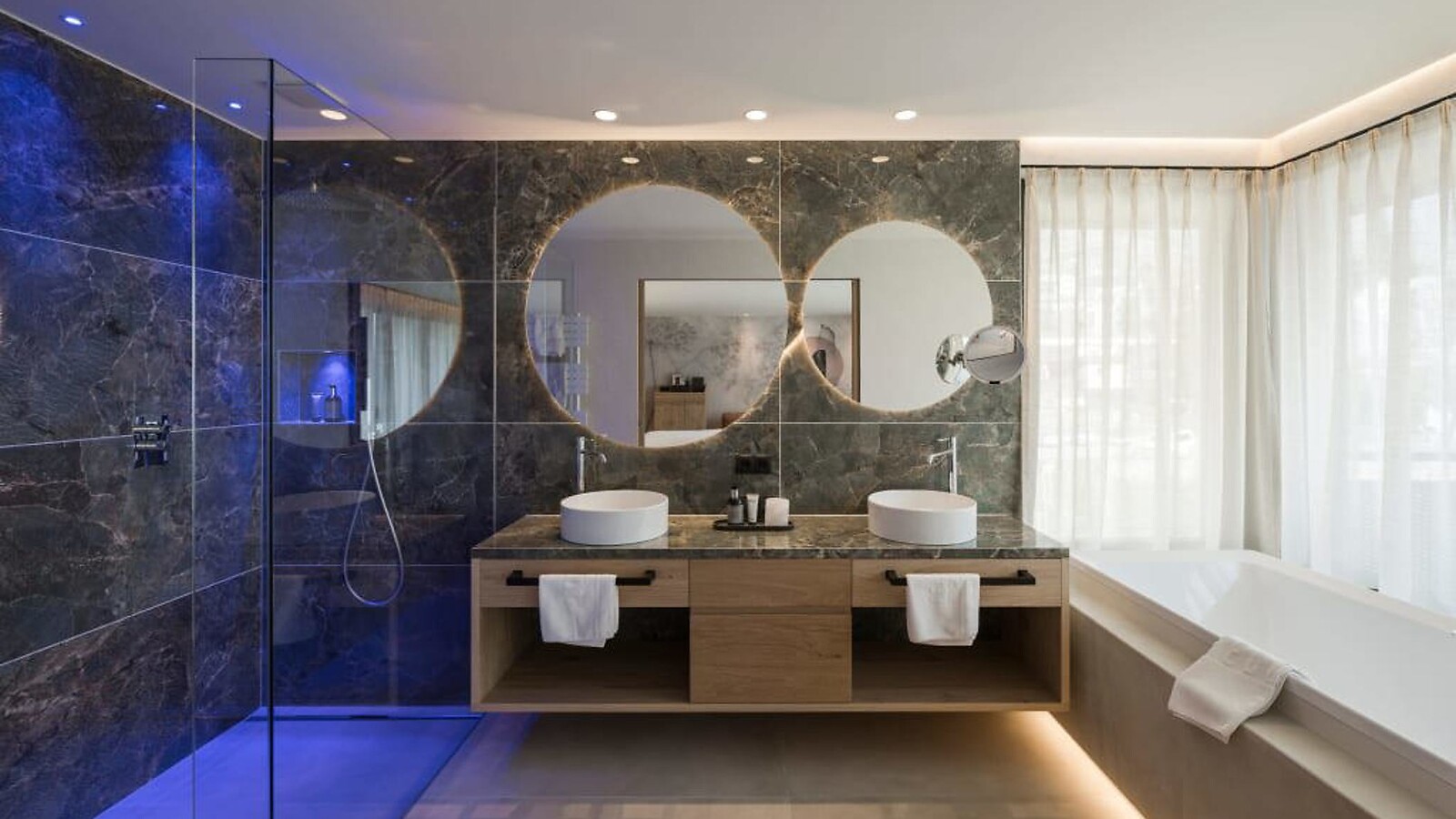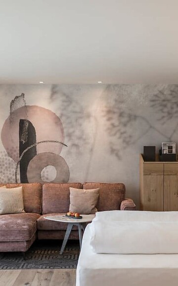 Familienurlaub trifft auf ungestörte Zweisamkeit dank zwei getrennten Schlafzimmern, jeweils mit einem modernen Badezimmer mit großer Walk-In-Dusche und zwei WCs. Mit exklusiv ausgestattetem Wohnraum mit großer Kuschelecke, Holzboden, Naturholzmöbeln, großem, separatem Kinderzimmer mit zwei getrennten Betten. Außerdem mit dabei: Whirlpool-Badewanne mit Panoramablick, Doppelwaschbecken, Bidet, Minibar, Safe, 2 Flatscreen TV, Telefon, kostenloses WLAN, große Ost-Panoramaterrasse mit Relaxliege und Hängesessel, Garagenplatz und Klimaanlage.
