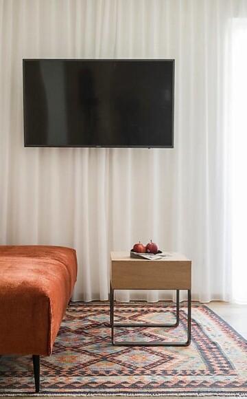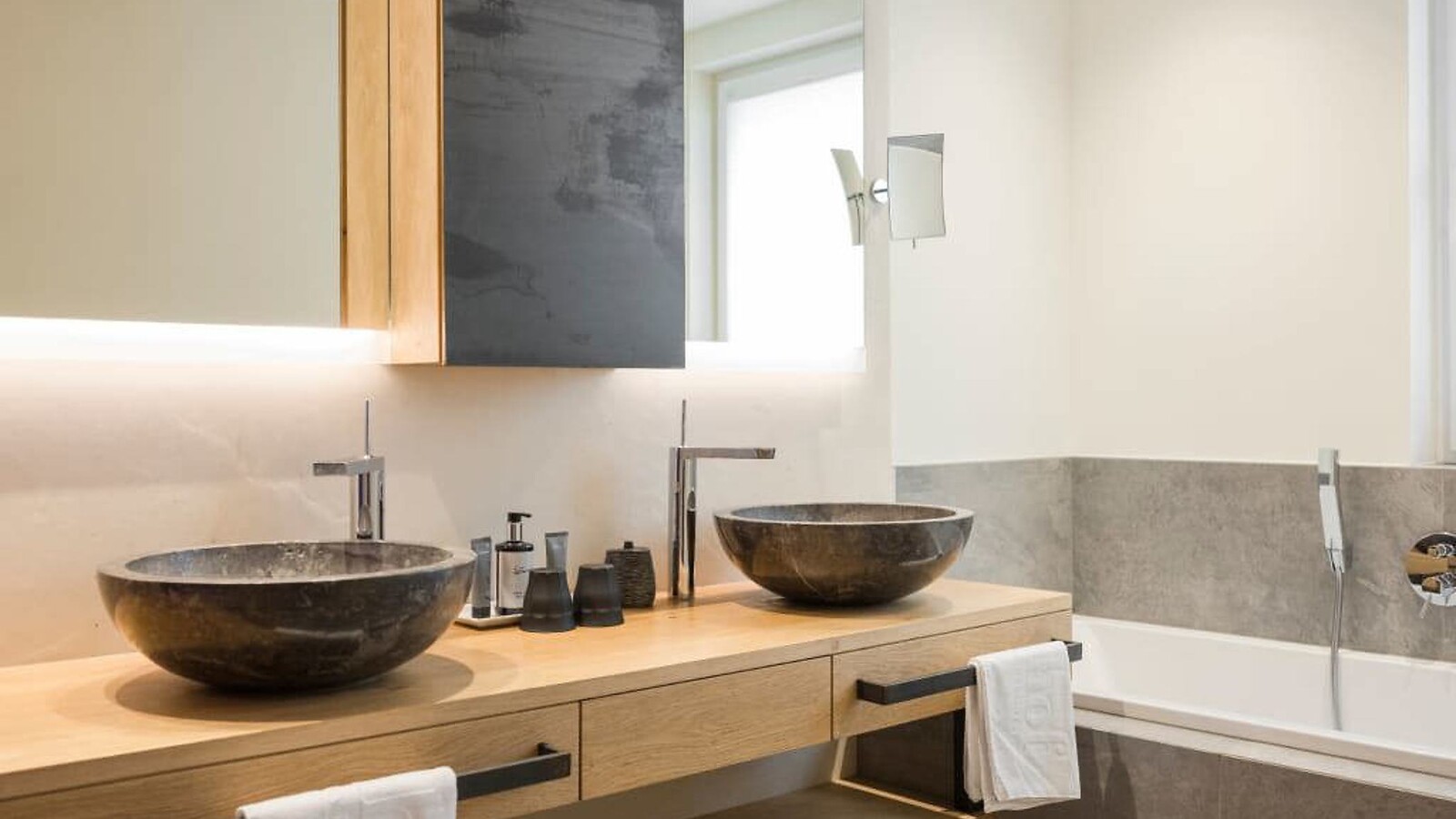 Bright and inviting. Our Flower meadow double room features a comfortable seating corner, wooden floor, natural wood furniture, modern bathroom with large walk-in shower, separate toilet, minibar, safe, flat screen TV, telephone, free WiFi, north-facing balcony, a garage parking space and air conditioning.