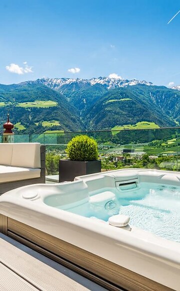 101m² including 56m² outdoor penthouse terrace with whirlpool, private butler service, open-plan living/sleeping lounge with romantic fire, luxury box-spring beds with "Sleep-Fit-Health-System", comfort-professional cabinet area, 2 relaxing designer chairs, Dolby-Surround TV with Bluetooth, suitcase-style bar with wine, Nespresso & tea desk, bathing lounge with designer mirror made of semi-precious stone with lady's beauty desk, multi-sensory shower for two with light & sound system, outdoor penthouse terrace and garden in a private setting, whirlpool de luxe with hygienic-luxury-system, Finnish exterior sauna with multi-sensory shower for two & swing couch for two, "Sky Star" fireplace with cosy lounge, outdoor cinema, comfortable seating and dining furnishings, aromatic herbs, radiant warmers and lantern, no animals. In our DolceVita Lodge.