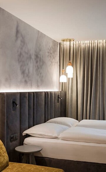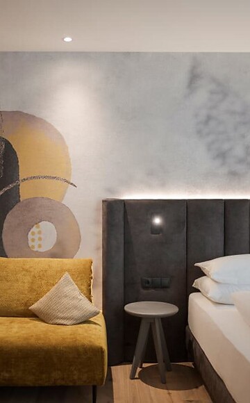 Piacevole e spaziosa. La nostra camera doppia La Vita è arredata con un accogliente angolo soggiorno, pavimento in legno, mobili in legno naturale, bagno moderno con grande doccia walk-in, doppio lavabo, WC separato (senza bidet), frigobar, cassaforte, flat screen TV, telefono, WIFI gratuito, balcone rivolto a ovest con sdraio relax, parcheggio davanti all'hotel e aria condizionata.