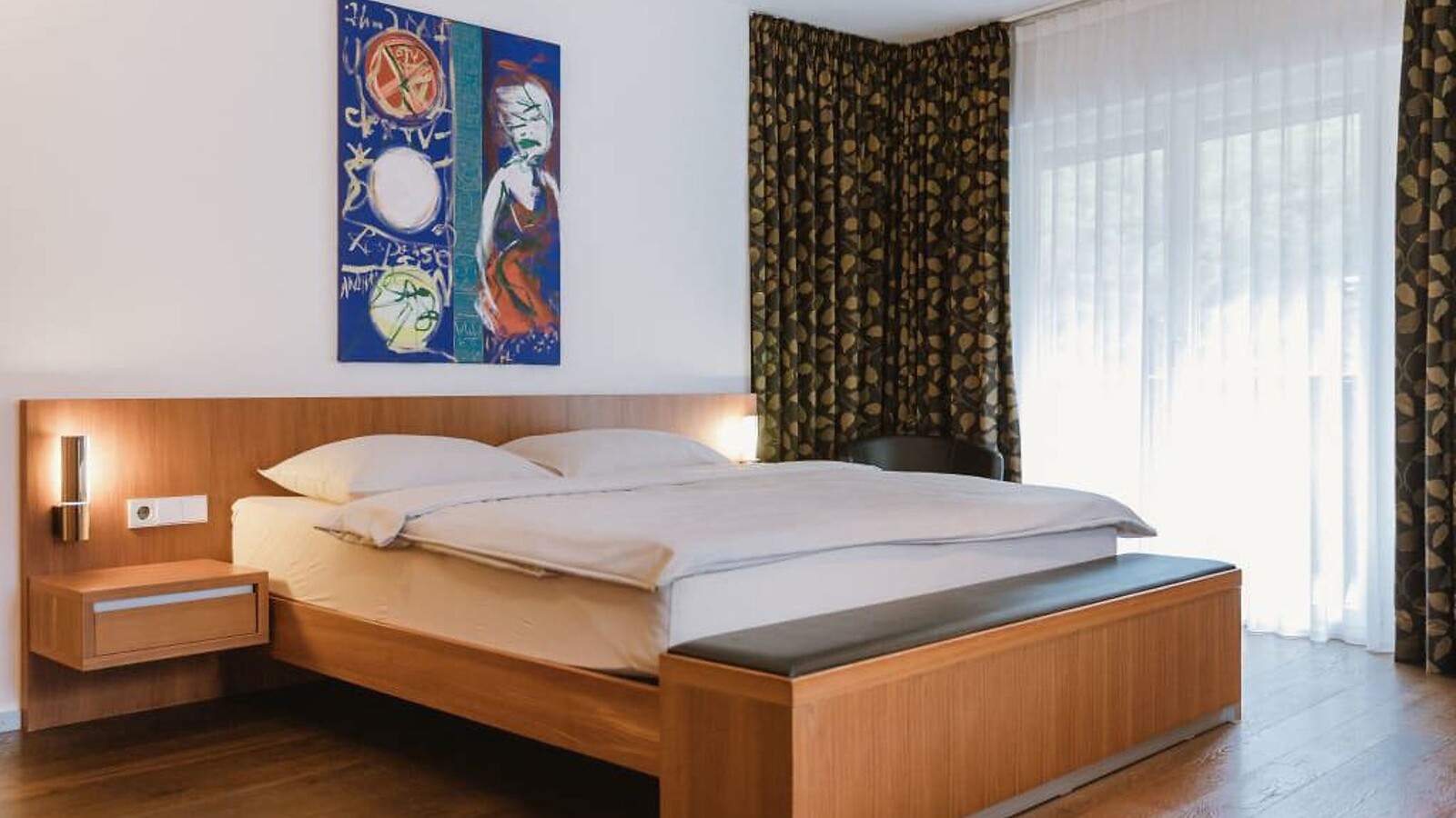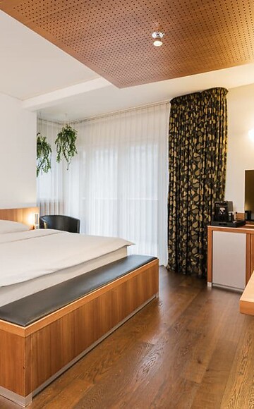 ca. 40 m² incl. 13 m² di balcone per 2 persone, camera moderna e accogliente, pavimento in legno, tavolo con sedie, bagno con doccia, in parte con vasca, bidet, ampio balcone con vista sulla Val Venosta, TV a schermo piatto, Wi-Fi gratuito, minibar, cassaforte, posto macchina in garage