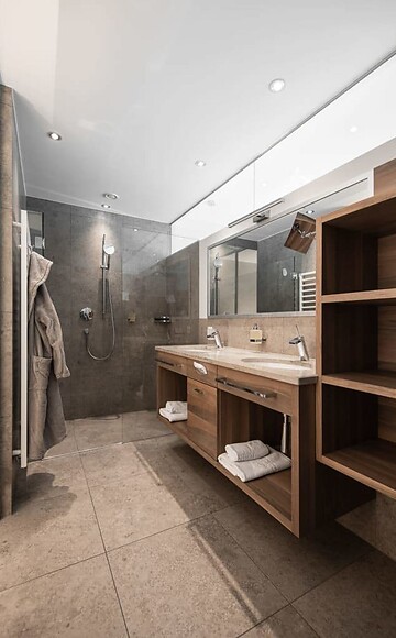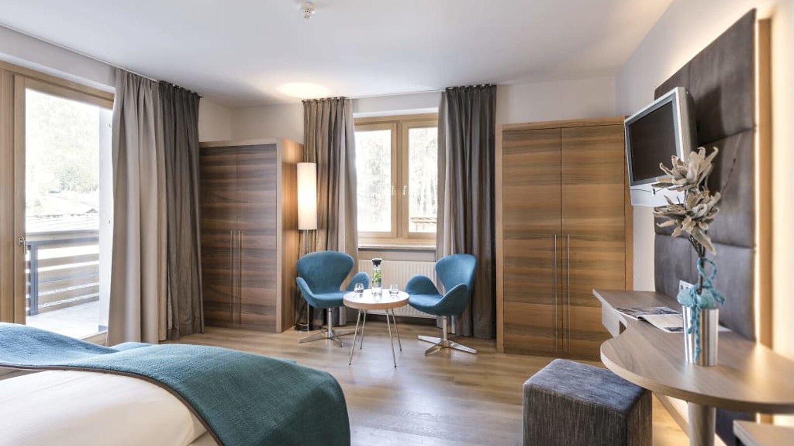 40 m² incluso 10 m² balcone, dall'esclusivo design ALPIANA con pavimento in legno di quercia, con vista sulla natura, doccia, con balcone, tv a schermo piatto, cassetta di sicurezza, minibar con prodotti dell'Alto Adige, letto matrimoniale extra large.