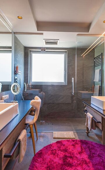 55m² compreso 14m² area living outdoor (loggia) con whirlpool, letto di lusso boxspring con sistema Sleep-Fit-Health lungo 210 cm, sistema d'armadio comfort professionale, 2 romantiche sedie di design, TV Dolby Surround con bluetooth, bar di design stile valigia con angolo vino, Nespresso e tè, bagno di design con doccia emozionale per 2 con impianto luce e audio, postazione make-up per Lei, doppio lavabo per Lui e Lei, WC a parte, area living outdoor con atmosfera privata, idromassaggio di lusso con sistema Hygienic Luxury, comodi mobili da esterno, erbe aromatiche, lampada riscaldante e lanterna, animali non ammessi. Nella DolceVita Lodge.