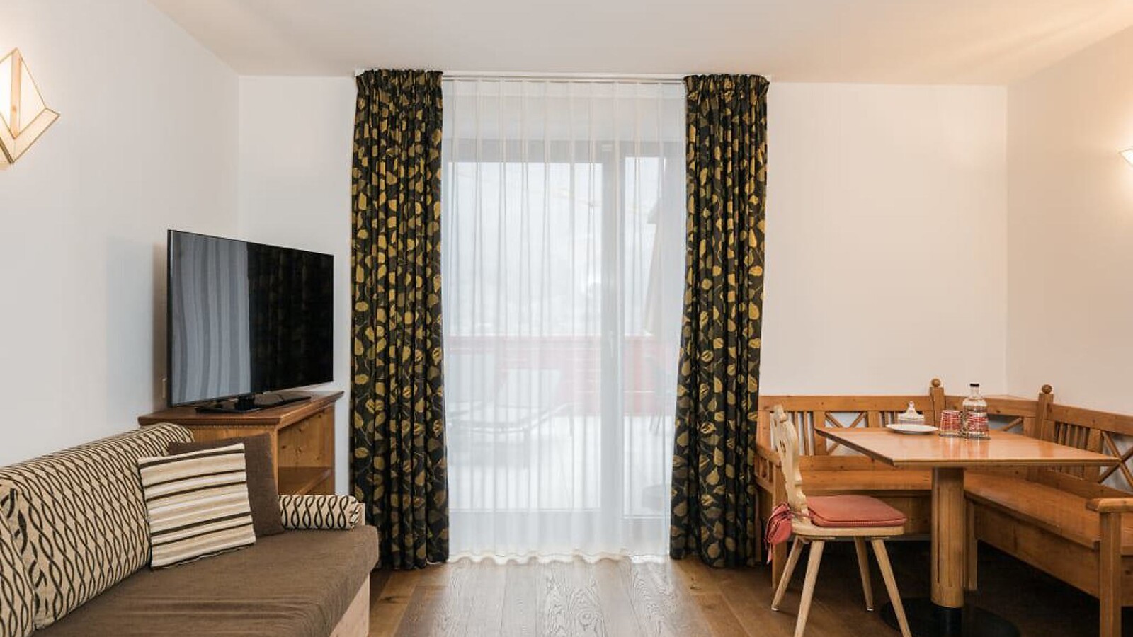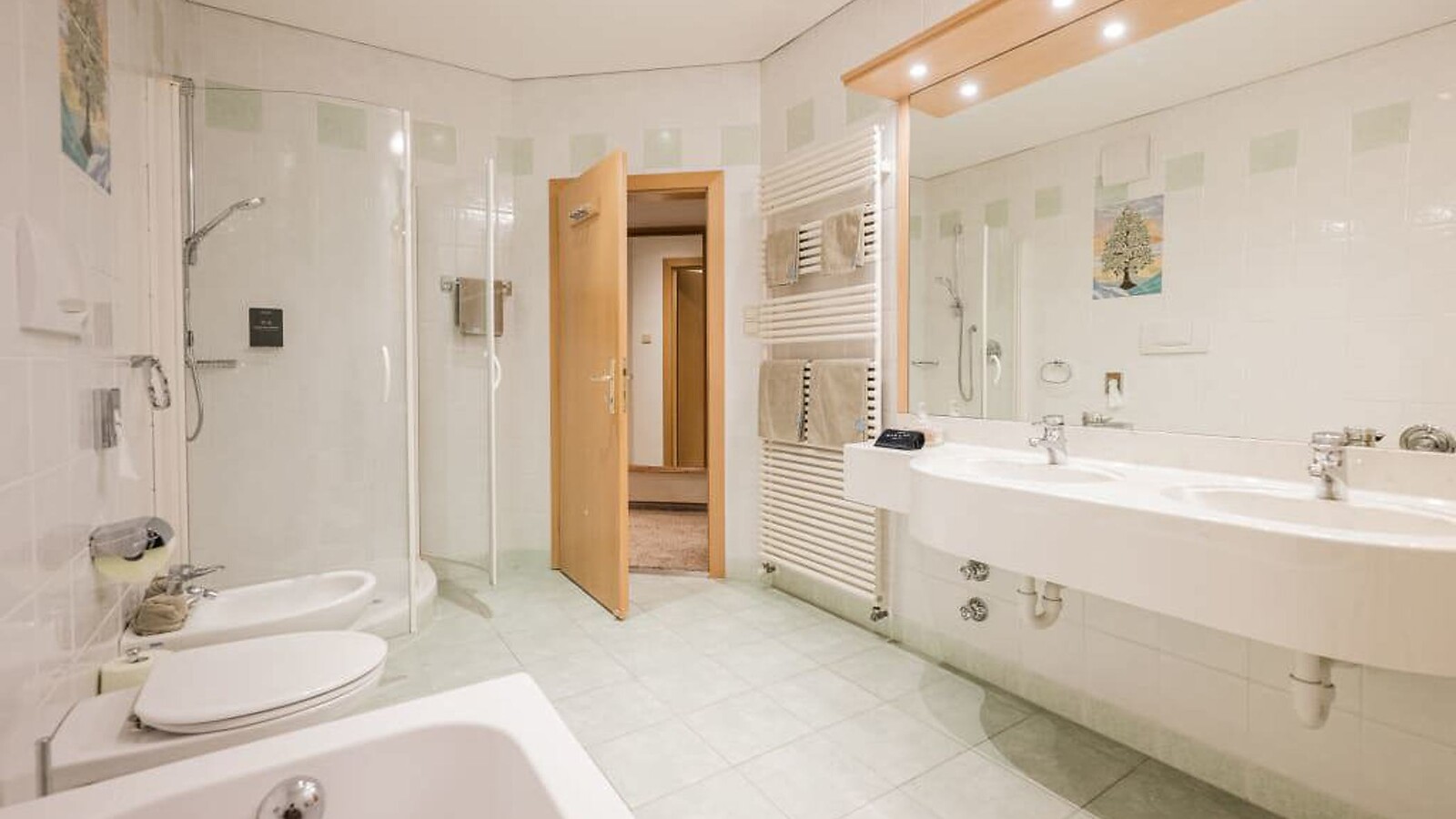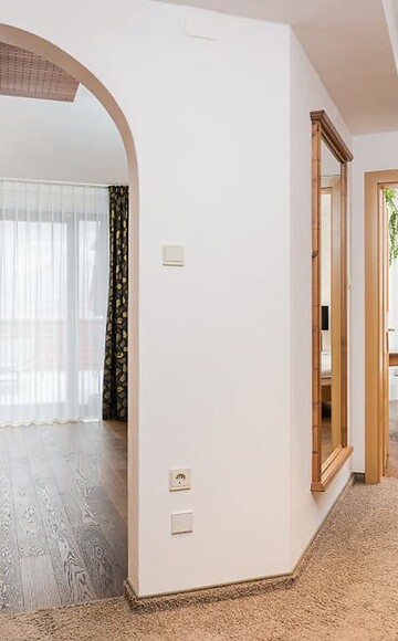 ca. 88 m² incl. 40 m² di terrazza per 2 - 4 persone, suite in stile casa di campagna al quinto piano, zona giorno e zona notte separate, divano e tavolo con sedie, bagno con vasca, doccia e bidet, TV a schermo piatto, Wi-Fi gratuito, minibar, cassaforte, terrazza esposta a sud di 40 m² con sauna bio-finlandese panoramica, vasca immersione, posto macchina in garage
