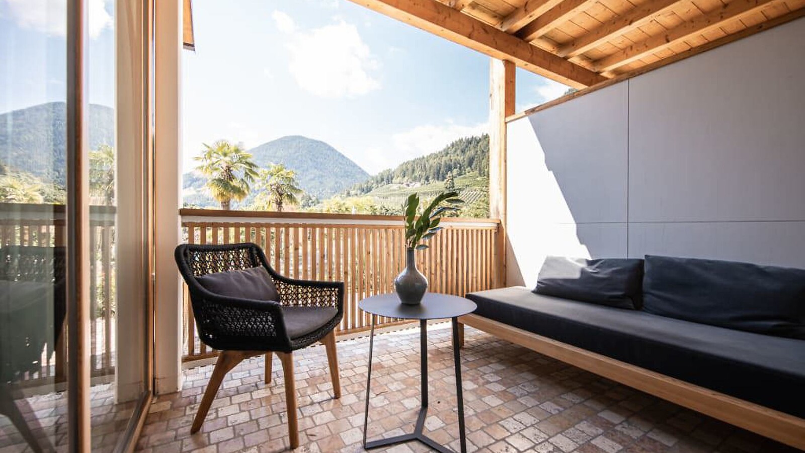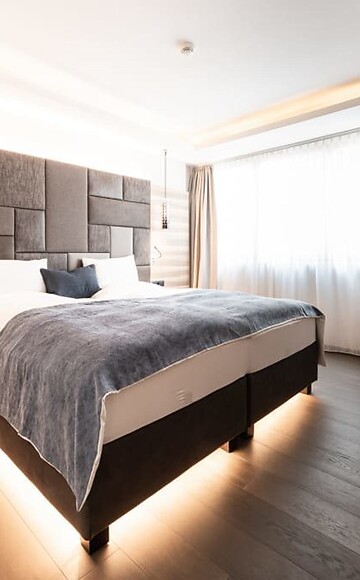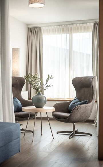70 m² incluso 8 m² balcone a loggia, nuovo entrée e bagno con doccia lussuosa e wc separato, con vista lato sud sul Pool Garden e sul verde circostante, ampio balcone con loggia, 2 tv a schermo piatto, cassetta di sicurezza, minibar con prodotti dell'Alto Adige, lussuoso letto extra large, zona notte e zona giorno separate (possbilità di sonni separati per 1-2 persone), con aria condizionata, posto auto in garage incluso