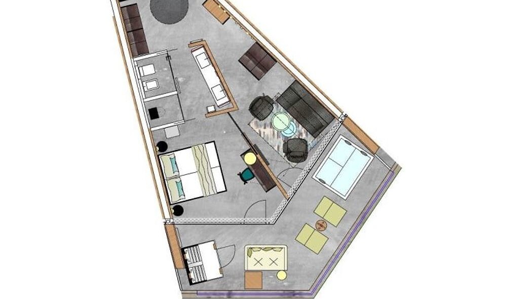 ca. 68 m² incl. 23 m² di balcone per 2 - 4 persone nella nuova costruzione, Suite accogliente e moderna, zona giorno e zona notte separate, arredamento in materiali naturali, pavimento in cemento naturale color terra, larice massiccio nostrano spazzolato, intonaco grezzo a spruzzo sul soffitto per una piacevole acustica ambientale, armadio e letto in pelle, divano letto (misura francese), scrivania in pelle, lampada da terra con poltrone di design, bagno con doppio lavabo, doccia, WC con bidet, TV a schermo piatto, Wi-Fi gratuito, minibar, cassaforte, posto macchina in garage - animali domestici non ammessi