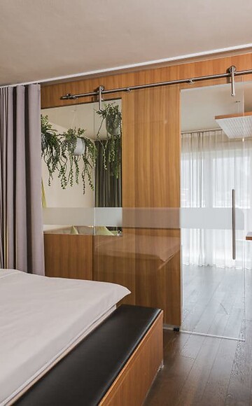 ca. 59 m² incl. 11 m² di balcone per 2 - 4 persone, Suite al secondo piano, zona giorno e zona notte separate da una porta, divano e tavolo con sedie, arredata in stile moderno e con tonalità calde, pavimento in legno, bagno con vasca e doccia, bidet, WC separato, TV a schermo piatto, Wi-Fi gratuito, minibar, cassaforte, balcone esposto a sud, posto macchina in garage